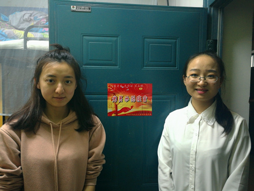 会议结束以后,欧洲杯官网14级辅导员蒋知老师来到学生宿舍,为欧洲杯官网的党员分发“党员示范寝室挂牌”并粘贴。