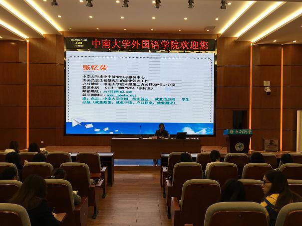 为了增强外国语学院研究生综合竞争力,提高整体就业水平,打造全方面高素质外语研究生就业队伍,本院研究生系列就业指导工作积极开展。其中,研究生就业指导专题讲座于2016年10月12日下午14:30在外语楼一楼报告厅顺利举行。此次讲座特别邀请到欧洲杯官网就业指导中心张忆荣老师。此次讲座成员包括欧洲杯官网研究生辅导员王海洋老师和2018届全体研究生毕业生等。