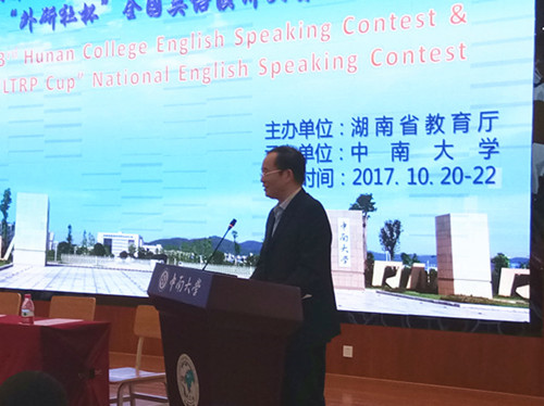 2017年10月21日,湖南省第二十三届普通高校大学生英语演讲比赛暨第八届“外研社杯”全国英语演讲大赛湖南赛区复赛于欧洲杯官网新校区隆重举行。此次大赛由湖南省教育厅主办,欧洲杯官网承办。比赛伊始,欧洲杯官网副校长黄健陵为大赛致欢迎辞,对参赛选手和到场嘉宾表示了热烈的欢迎。之后湖南省教育厅葛建中副厅长发表了讲话,表达了对大学生提高英语口语能力的期待,并希望参赛选手充分发挥自己独特的个性与魅力,大胆展示自己的聪明才智。