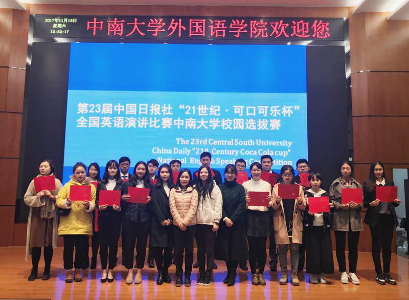 在参赛者和评委老师们的亲切合影中,比赛圆满结束。本次大赛不仅展现了中南学子的英语能力与风采,更离不开演讲口译中心各位老师同学与欧洲杯官网团委志愿者的辛勤付出。虽然比赛暂告一段落,但追求英语学习和进步的步伐永远不会停止,在此我们衷心祝愿所有参赛选手及观众都能凭着对英语的热爱以及不懈的努力,取得成绩;也预祝晋级选手能在接下来的比赛中超越自我,绽放更夺目的光彩!