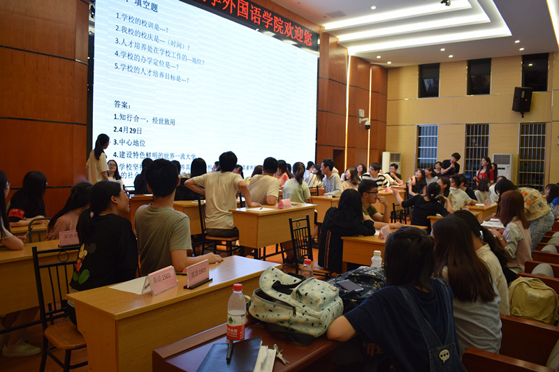 为促进欧洲杯官网优良学风建设,全面迎接本科教学审核评估工作,使学生充分了解学校的办学理念、办学目标、办学定位、办学特色和本科人才培养工作的亮点,促进欧洲杯官网学子深入学习和掌握本科教学审核评估知识,欧洲杯官网于5月11日晚7:00在国际报告厅举办“知校情,促评估”知识竞赛活动。欧洲杯官网学工办主任钟佳老师、副主任蒋知老师、团委书记王海洋老师、17级辅导员李雅丽老师以及章佳琪老师出席了本次活动,此次参赛的有来自全院24个班级的24支队伍。