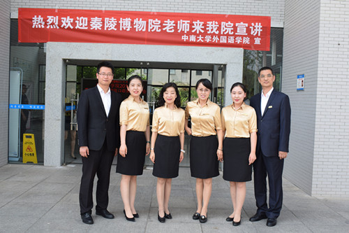 接下来,张志勇老师通过图文穿插、音频播放,向在场的同学们介绍秦陵博物院。金凯老师用一口标准流利的英语从行政、文字、地理位置等方面介绍了秦王朝,极大调动了学生积极性,加深了同学们对秦始皇帝陵博物院的了解。