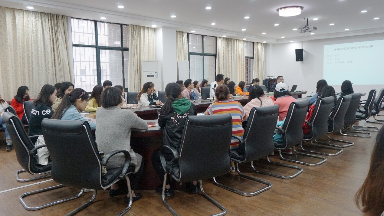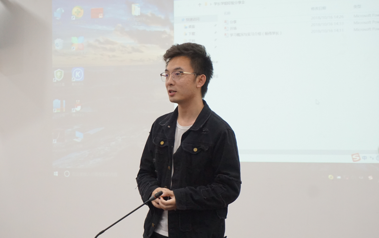 最先进行分享的是杨伟学长,他先向大家介绍了自己在研一期间是如何扎实的打好基础,为研二的丰富实习做好了准备。之后学长向大家分享了自己对于研究生三年的总体规划和建议。最后分享了自己在汉语桥活动、隆平高科、湖南省人民医院、中国日报湖南记者站、湖南省商务厅援外项目、环球网新闻编译等实习过程中的体验,介绍了各实习岗位的条件和基本情况,强调了研一期间时间充裕,要抓紧时间打好基础。