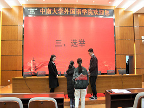 大会第一项,全体起立,奏唱国歌。随后主持人致开幕词,宣布了本次大会选举的预备团员代表名单,并向所有代表们详细介绍了各位代表的简历,最后强调了投票的公正性和严明性。
