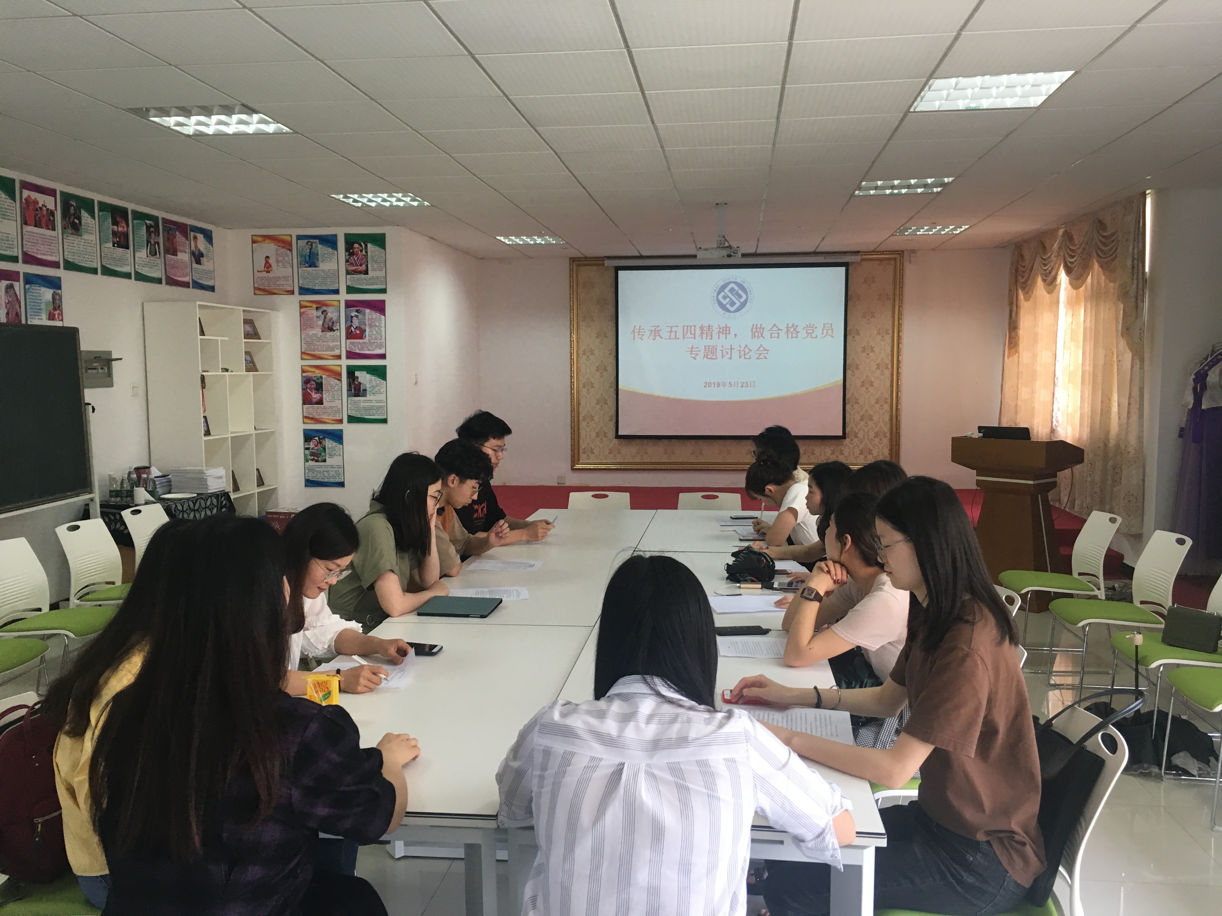 在两个会场上,毕业生党员们紧扣“传承五四精神,做合格党员”这一主题积极讨论,从对中国近现代历史的回顾,聊到对五四精神的解读,再到五四精神在当代中国的体现,最后结合大学生党员的身份,对自己提出要求和期望。