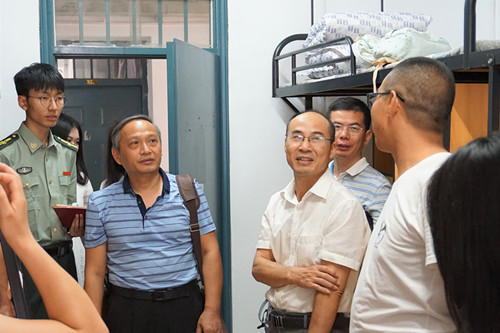 领导们走进一间间新生宿舍,对新同学的到来表示热烈欢迎,悉心询问了新生衣、食、住、行各方面的问题,认真聆听学生及家长对学校设施环境、学院迎新工作的感受,详细了解每位学生的基本情况和入学心情,耐心介绍大学的学习方法与生活特点等。