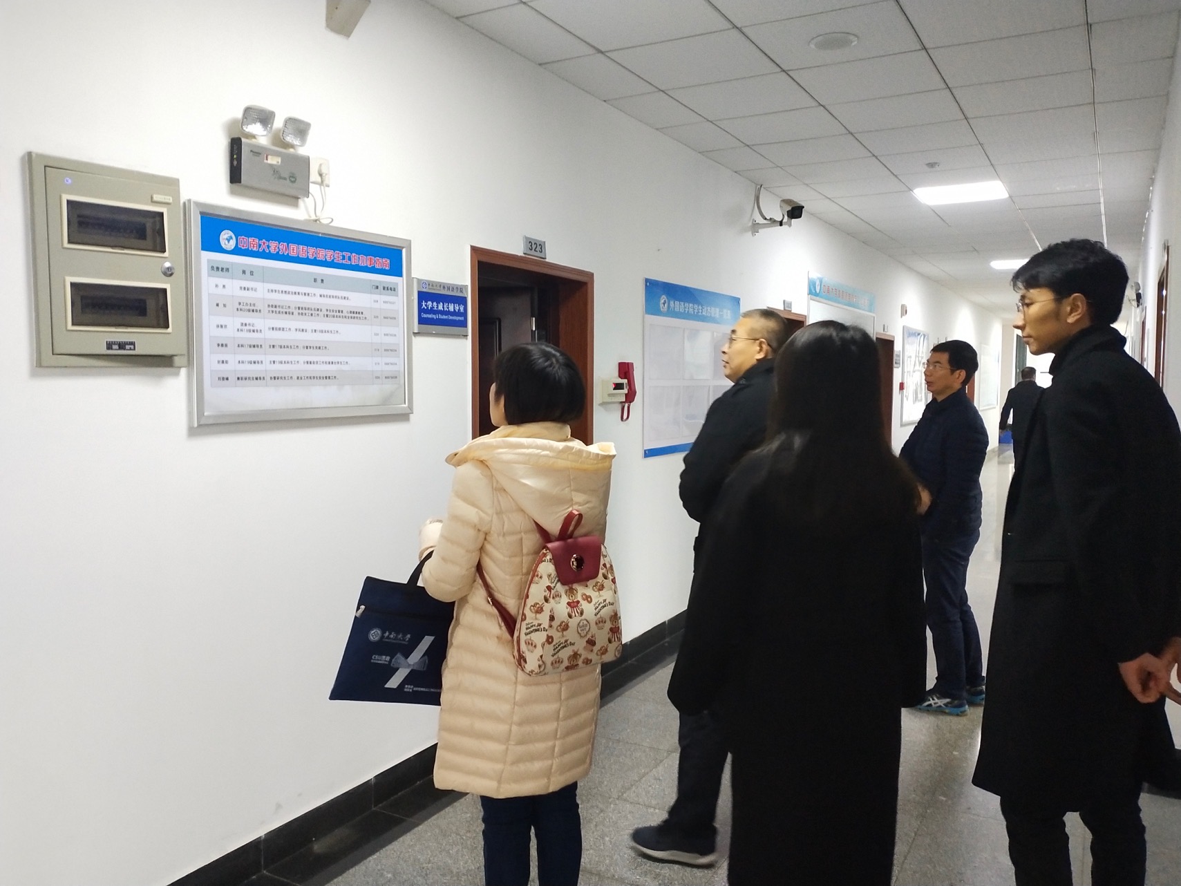 孙书记首先带领海南大学学工同仁们参观了学院各楼层,介绍了学院的基础设施情况,随后在学院326会议室进行了深入交流。孙书记从学院历史、学科情况、辅导员班导师队伍、党支部建设、就业升学情况等各方面对学生工作进行了介绍;李书记和陈主任认真了解了学院辅导员队伍建设和班导师设置,并对学院学生升学就业以及学生心理工作进行了交流。海南大学学工同仁通过此次交流收获满满,并希望在将来有更多的合作和沟通机会。
