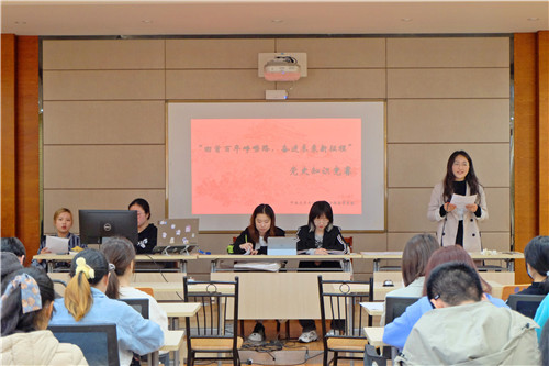 为献礼中国共产党成立一百周年,同时进一步加深同学们对党史的了解,欧洲杯官网党史知识竞赛4月18日下午14时在外语楼501教室成功举办。院团委书记、18级辅导员徐智欣老师莅临本次大赛,来自各团支部、学生党支部以及团学生会各部门的42名同学14支队伍参赛。