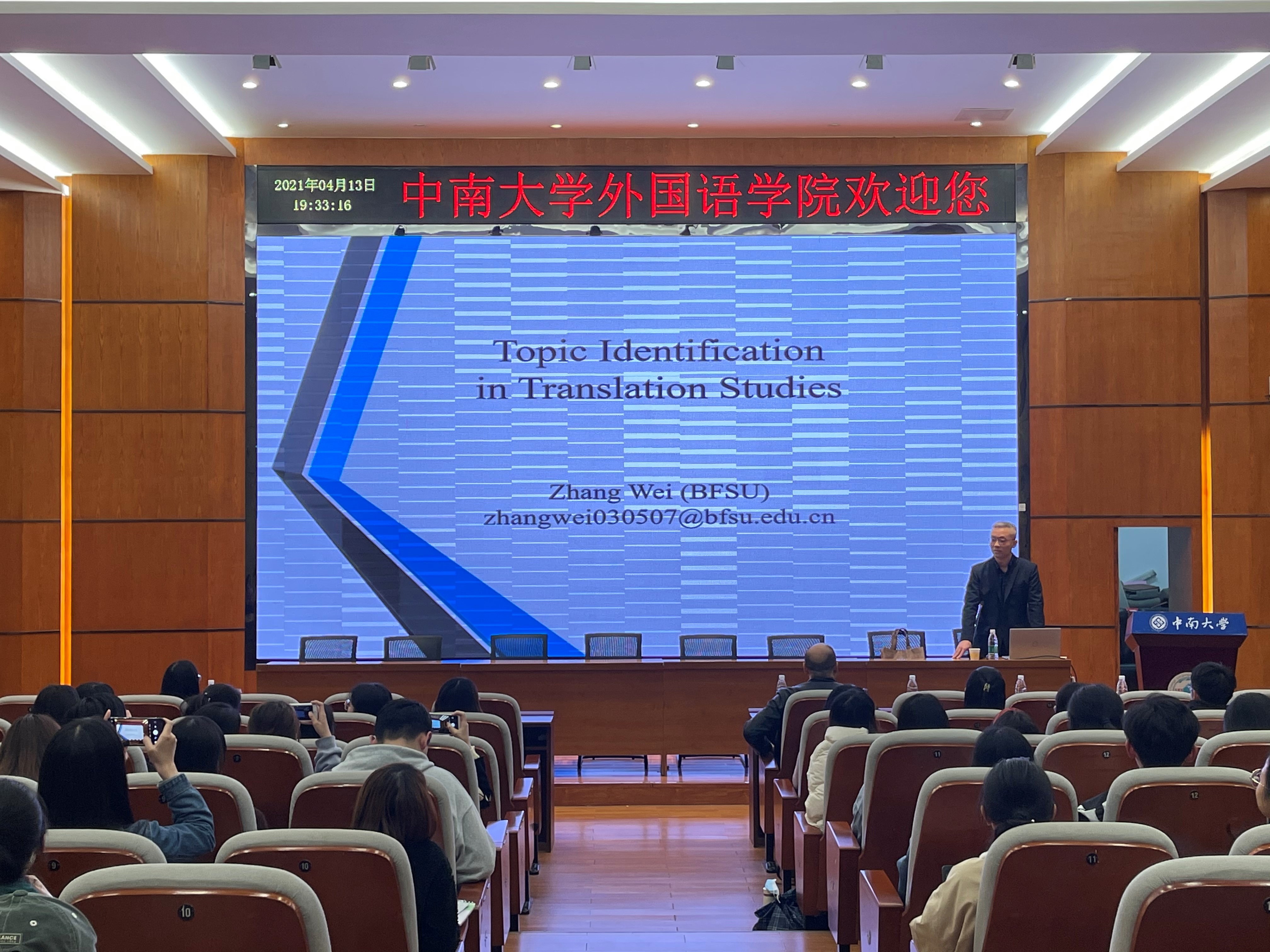 2021年413日晚7时,北京外国语大学英文学院张威教授莅临欧洲杯官网一楼国际报告厅讲学,讲座主题为:翻译研究选题的战略思考与实践。学院李清平院长、杨文地副院长、范武邱副院长等近百人师生参加了此次讲座。