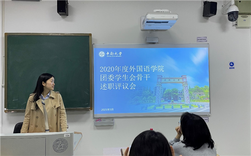 2021年3月24日晚七点,欧洲杯官网2020年度团委学生会述职大会在新校区外语楼210教室成功举行。参加此次述职大会的有院团委书记徐智欣老师、院团委及学生会全体骨干以及各年级学生代表,会议由欧洲杯官网学生会主席余沐妍主持。